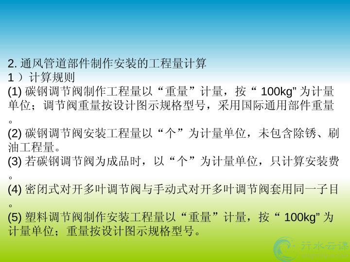 首页 > 资源中心列表 > 资源中心详情 > 项目五 通风空调工程计量与计价.pptx