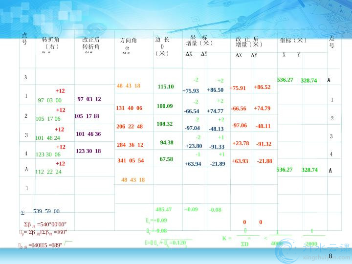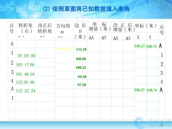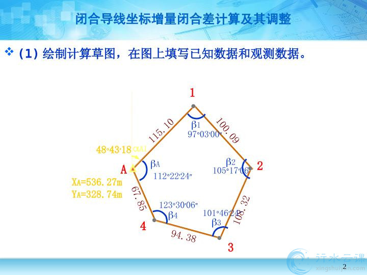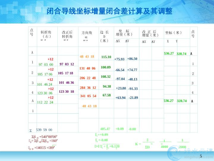 闭合导线坐标增量闭合差计算及其调整.pptx.pptx