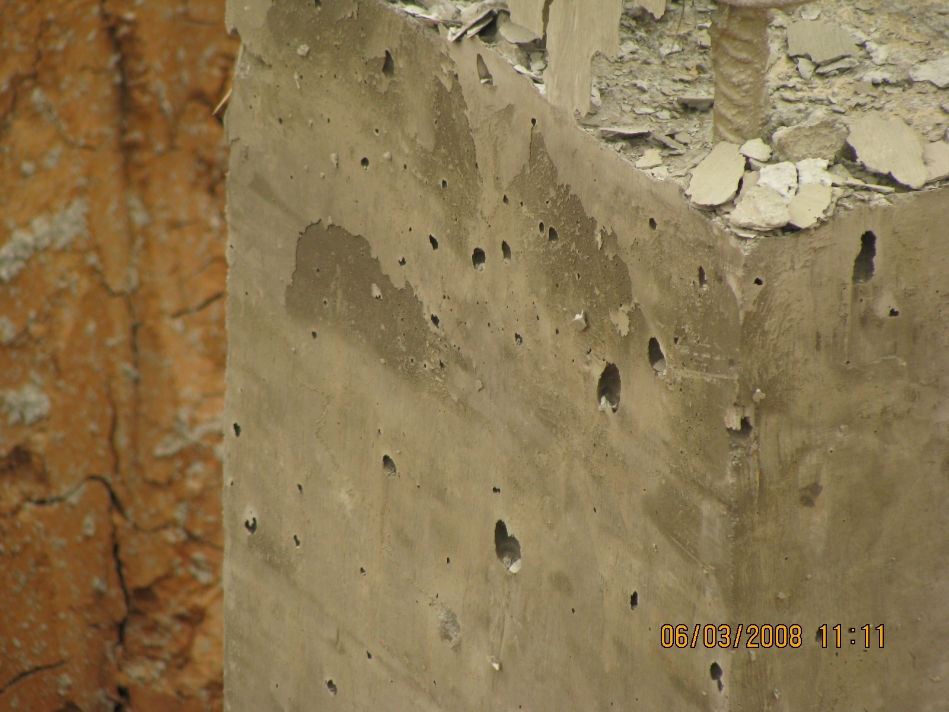 图片5-13柱混凝土的表面蜂窝
