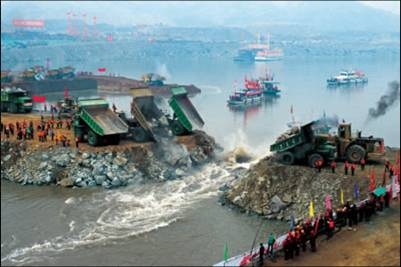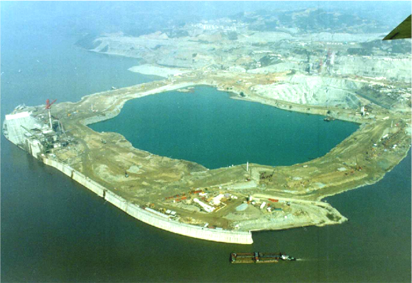 照片6-13大江截流后三峡工程施工现场