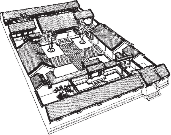 图3.7.5 明清北京四合院三进院落布局图(《中国古代建筑历史图说》)