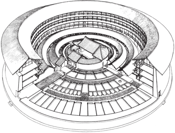 图3.7.6 福建永定客家圆楼承启楼剖视图(《中国民居研究》)