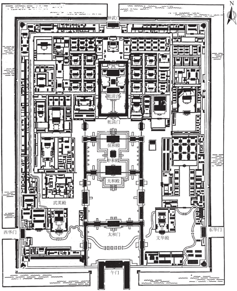 图3.7.7 紫禁城平面示意图(《中国建筑艺术全集》)