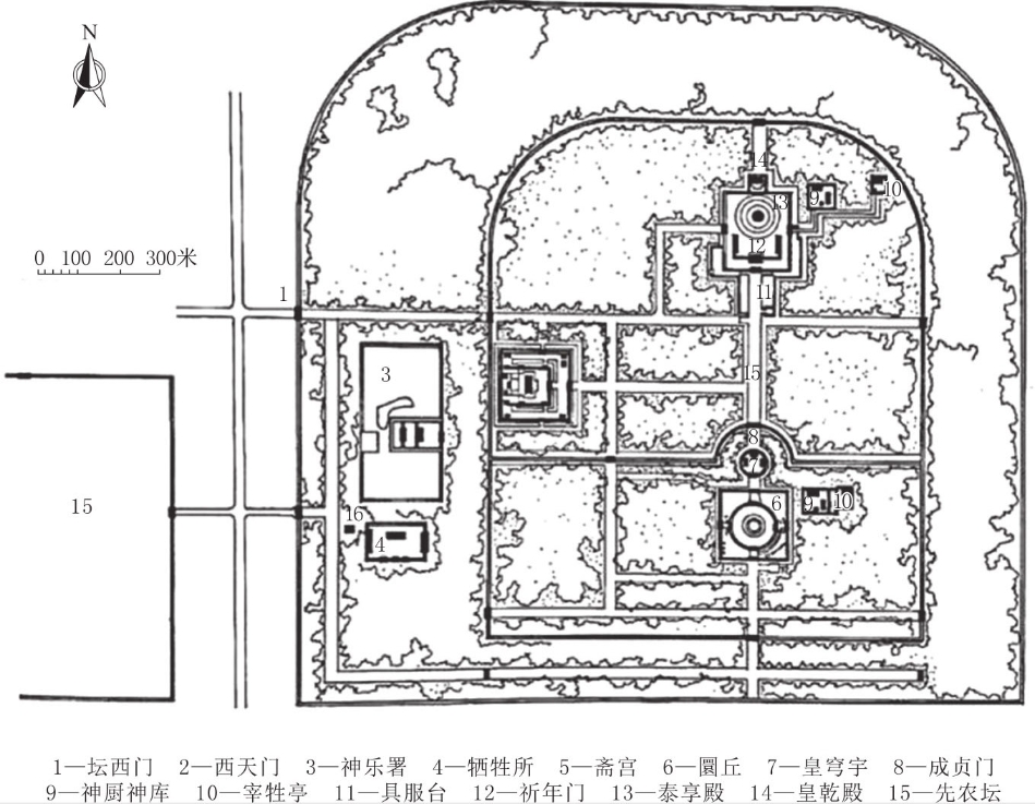 图3.7.10 北京天坛总平面图(《中国古代建筑史》第四卷)