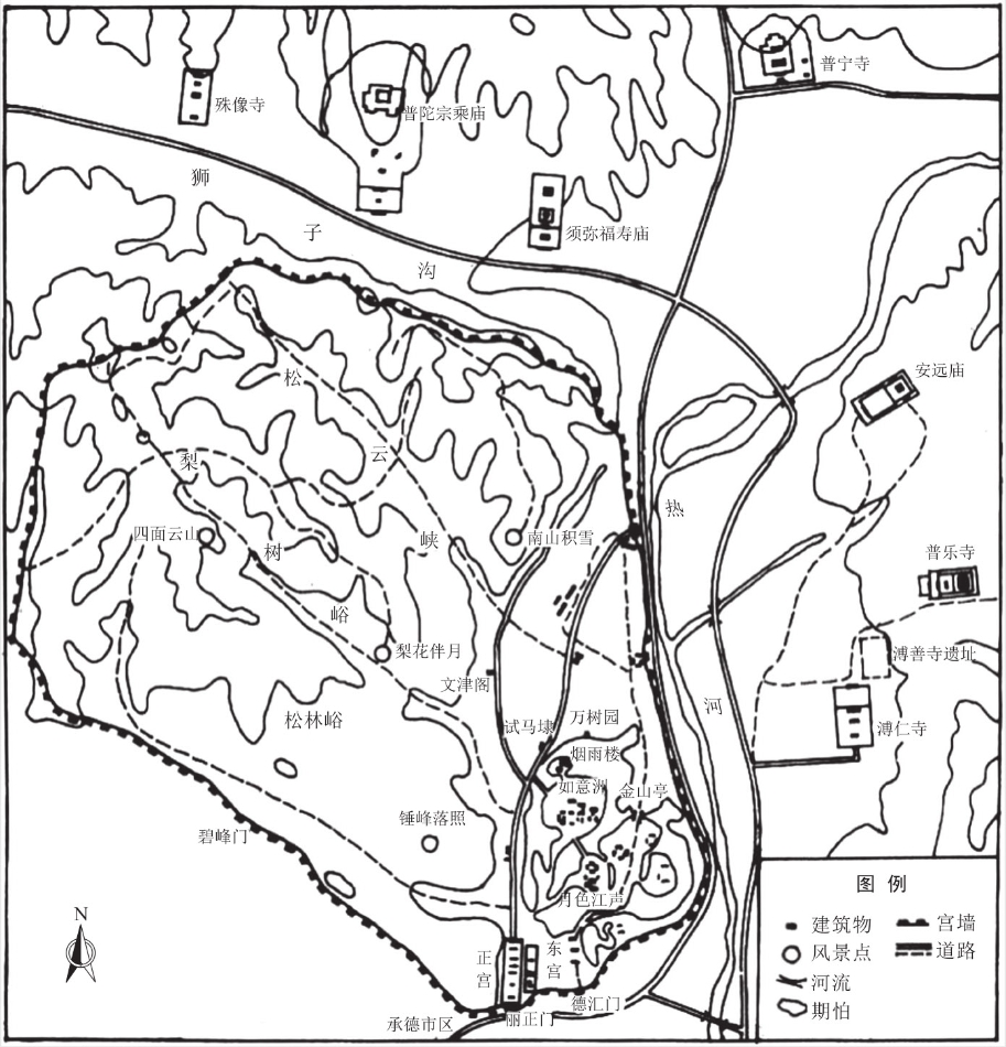 图3.7.16 承德避暑山庄总平面示意图(《中国古代建筑历史图说》)