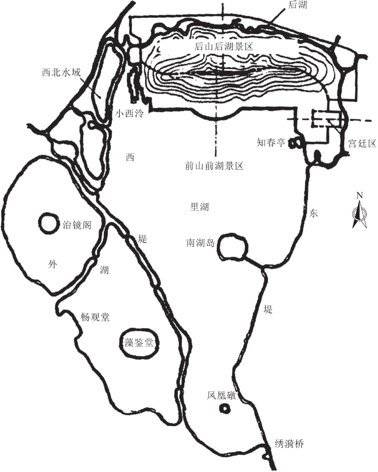 图3.7.17 北京清漪园规划分区示意图(《颐和园》)
