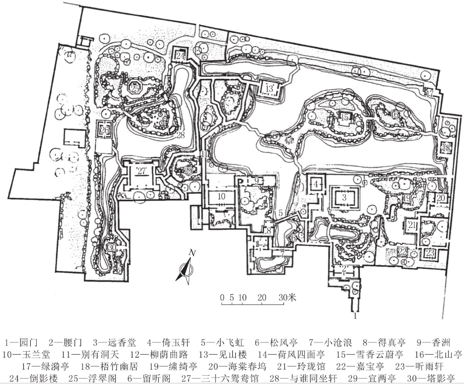 图3.7.18 江苏无锡寄畅园平面图(《江南理景艺术》)