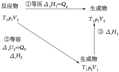 图1.11 某等温反应经由等压和等容两个途径进行