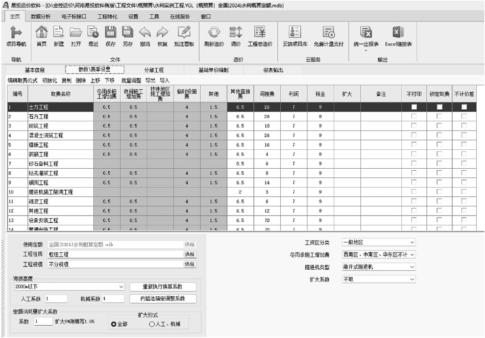 图9-13 参数/费率设置界面