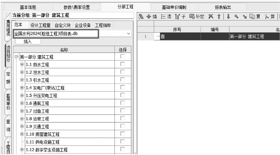 图9-16 项目划分窗口