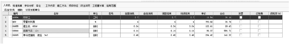 图9-19 人工、材料、机械消耗量窗口