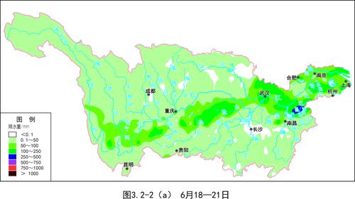 图3.2-2 长江中下游梅雨期(6月18日至7月20日)暴雨过程空间分布示意图(a) 6月18—21日.jpg